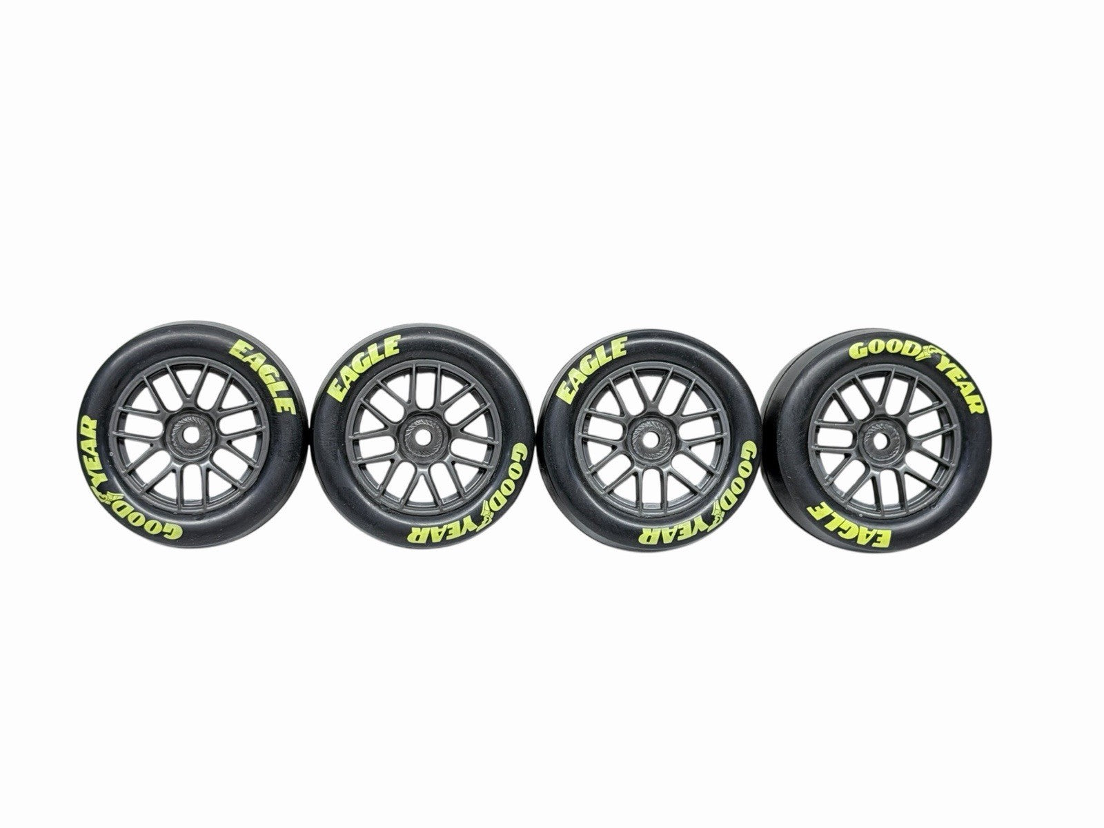 This is a genuine Losi NASCAR Goodyear Eagle mounted tires and wheels set, part number LOS-1937. The set was removed from a brand-new Losi NASCAR vehicle that was parted out and has never been used or run.