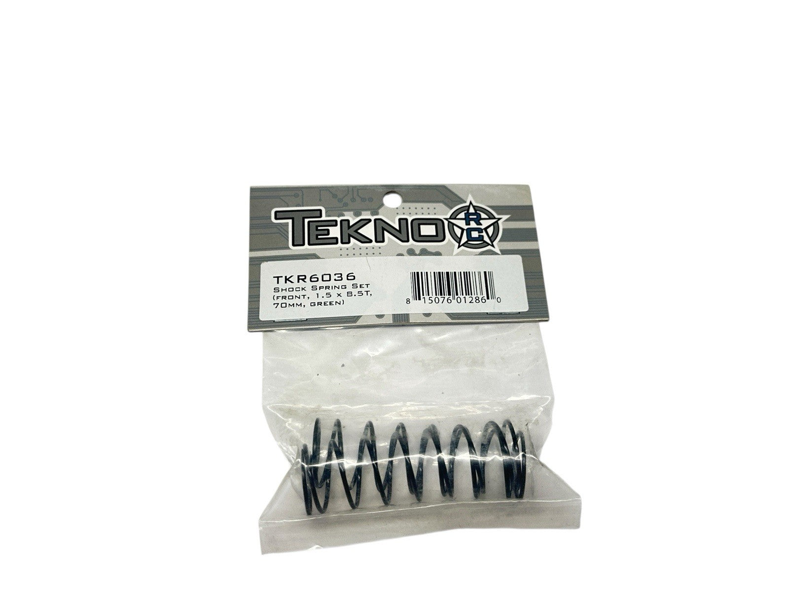 This is a brand-new Tekno RC TKR6036 Front Shock Spring Set (1.5x8.5T, 70mm, Green). The package is unopened and in excellent condition. Perfect for maintaining or upgrading your Tekno RC vehicle’s suspension performance.