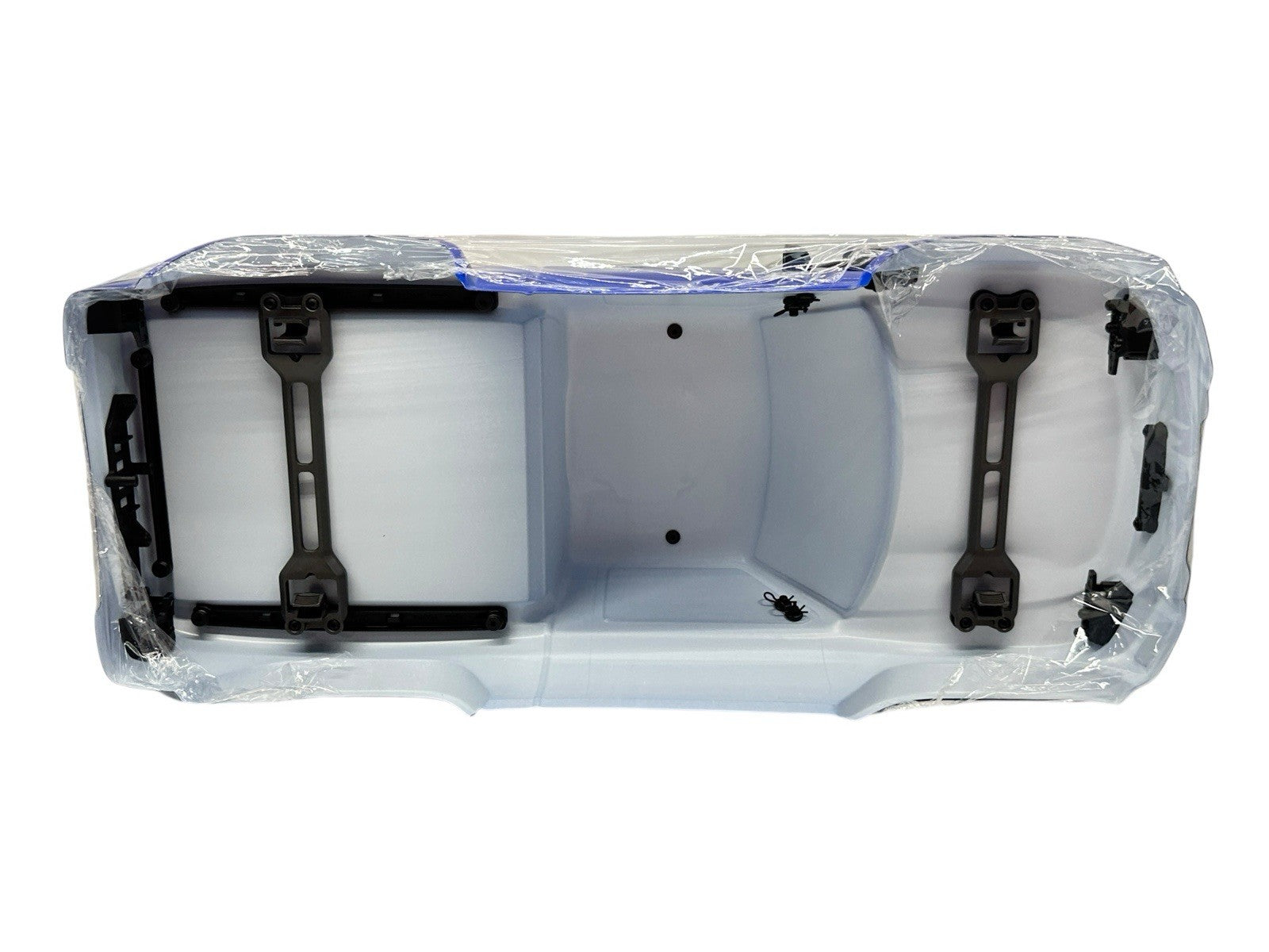 This is a genuine Traxxas TRX-4 Sport High Trail Edition body in Blue, complete with the factory accessory rack. The body was carefully removed from a brand-new Traxxas TRX-4 Sport High Trail that was parted out and has never been run or installed on a vehicle.