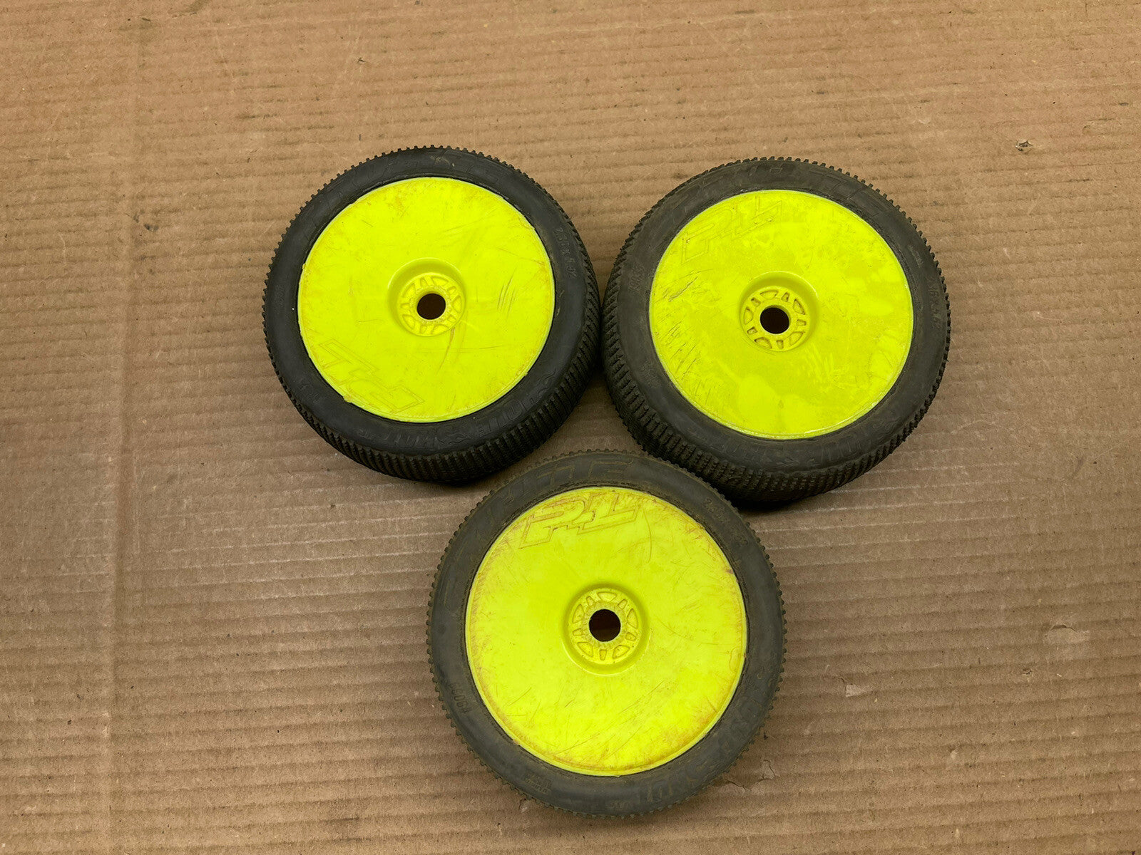 Proline Holeshot Vtr 9033 Tires W Wheels Set Of 3 (Read Ad!) #4950. Condition is "Used", tire tread is low/bald and all wheel hex are good. These are good for spares. Shipped with Standard Shipping.
