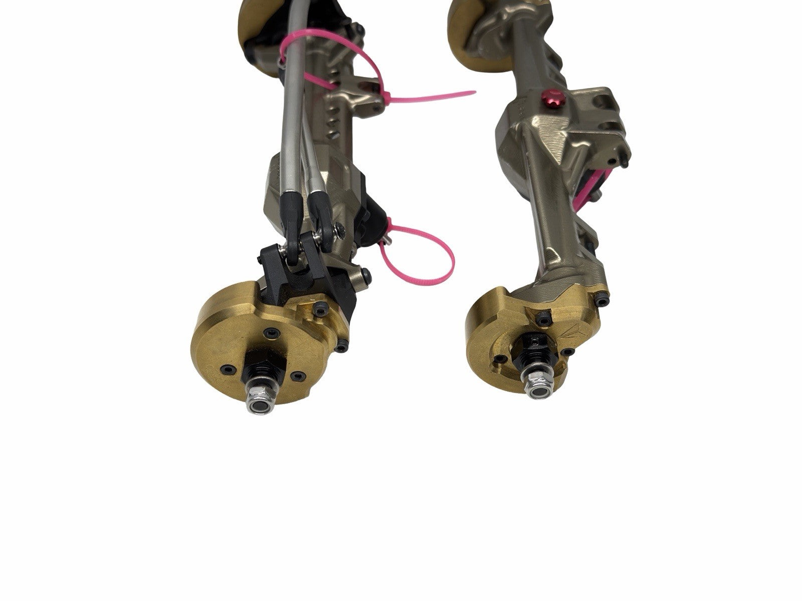 This listing is for a rare set of Vanquish F10 portal front and rear axles finished in the highly sought-after Dark Earth color. These axles have been lightly used and show minor cosmetic scratches consistent with careful use; no structural or functional issues are present.