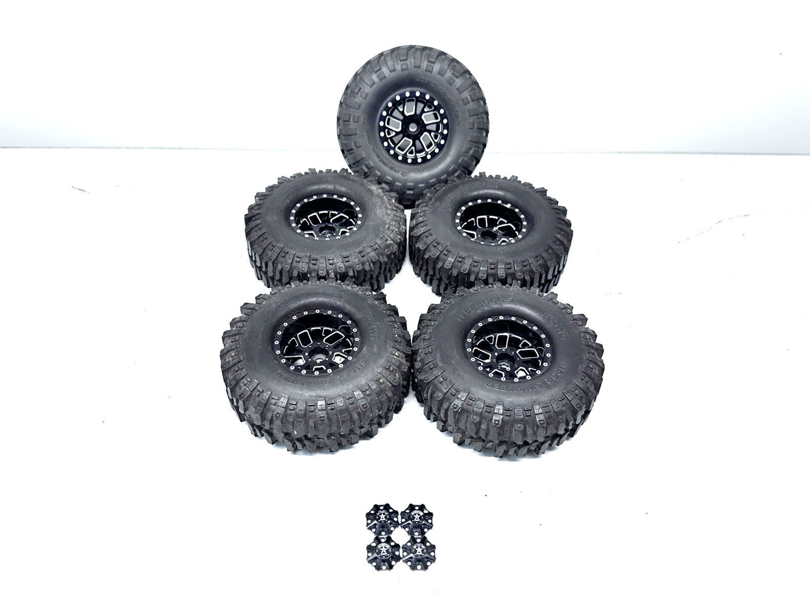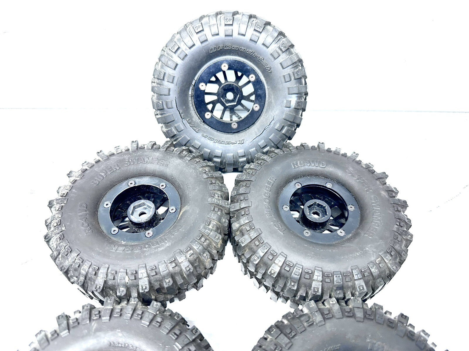 RC4WD Tsl Bogger Super Swamper W RBP Glock 1.9” Wheels Set Of 5 (Read Ad) #11097. Condition is “Used”, this set is nice overall. The tires have great tread and wheel hex are perfect. One wheel was a spare and doesn’t have matching tire (has dry cracking). Only 4 wheel covers are included and no hardware unfortunately. Please view all pics. Shipped with standard shipping.