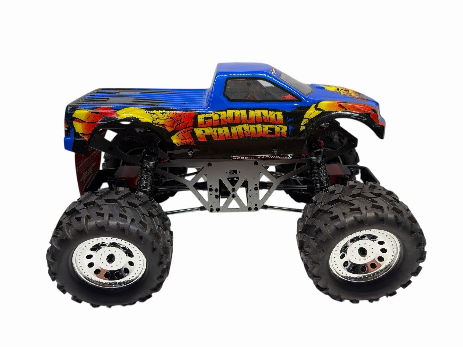 This Redcat Racing 1/10 Ground Pounder 4X4 Monster Truck is new and has been kept as a shelf queen. The truck has never been run and remains in excellent overall condition. Due to being displayed and moved for storage, there may be minor cosmetic markings in a few areas.