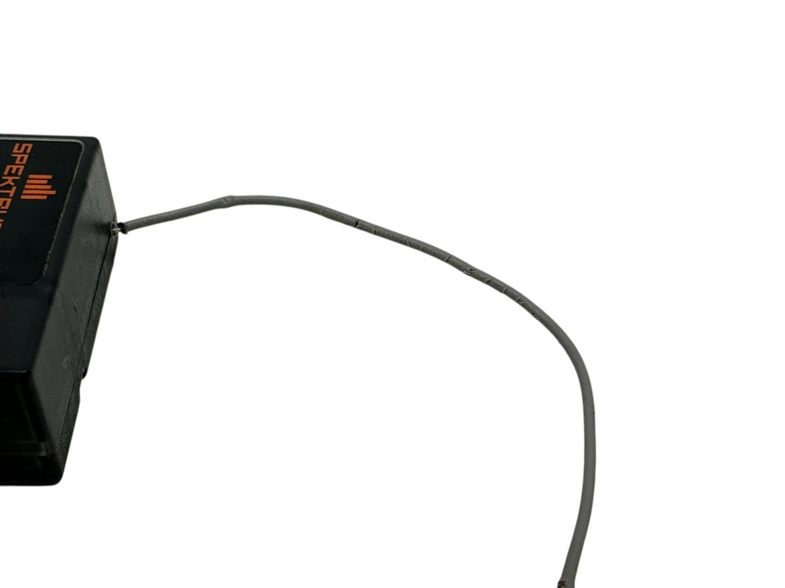 This is a genuine Spektrum SR210 DSMR 2.4GHz 2-channel receiver. The receiver powers on and functions; however, the antenna is damaged and must be replaced for proper operation and reliable signal performance.