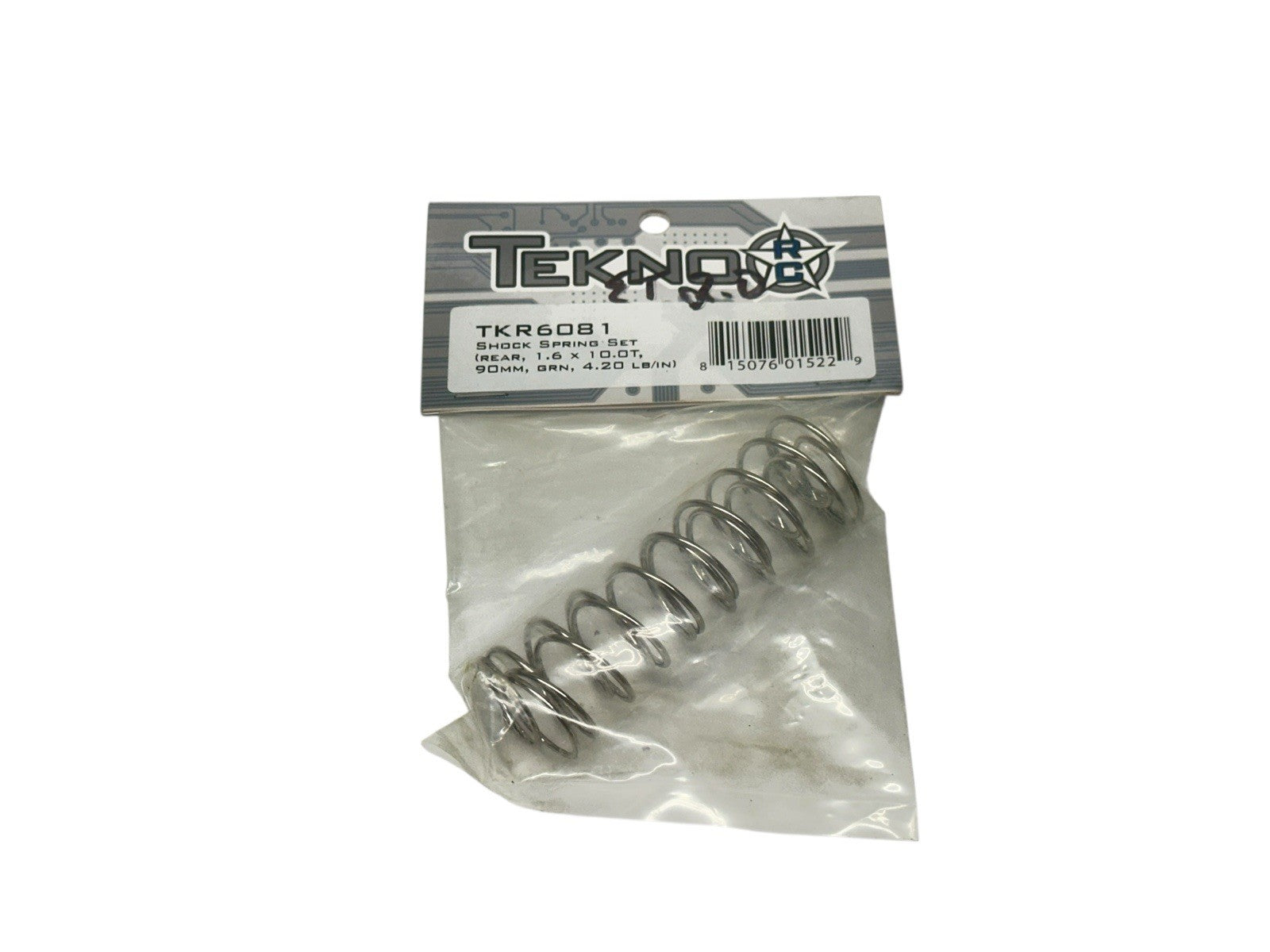 Tekno TKR6081 Shock Spring Set (Rear, 1.6x10.0T, 90mm, Green, 4.20 lb/in) RC Part #16683. Condition is New – package is unopened.