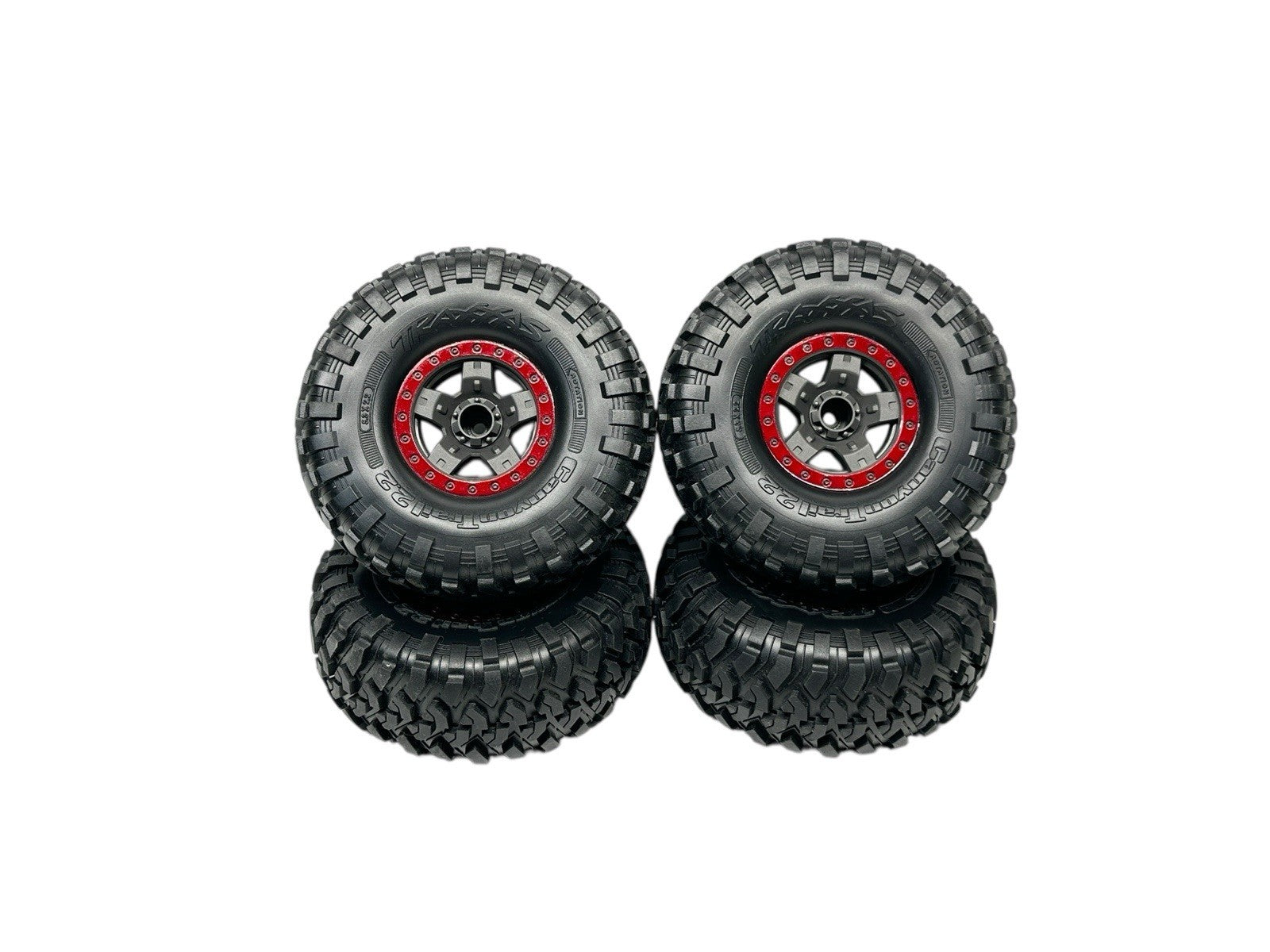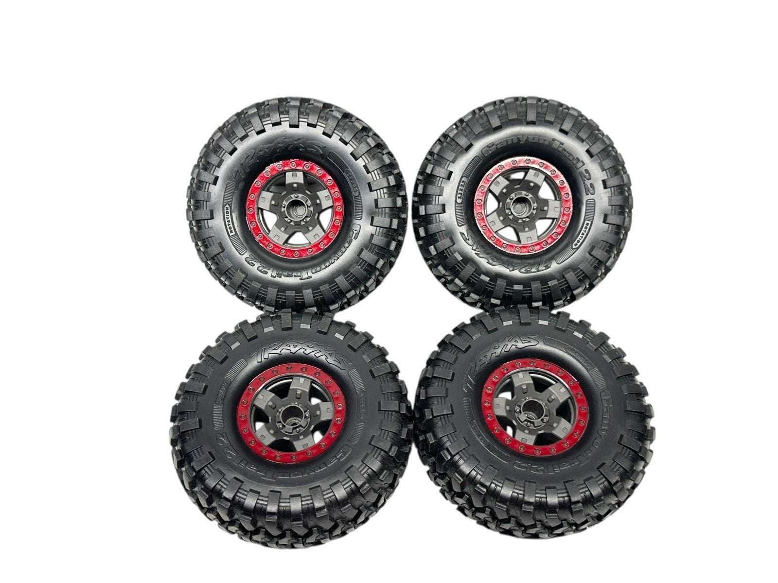 This listing is for a new set of Traxxas Canyon Trail 2.2 tires mounted on 12mm hex wheels, removed from a brand-new TRX-4 Sport High Trail Edition that was parted out. The tires and wheels have never been used or run.